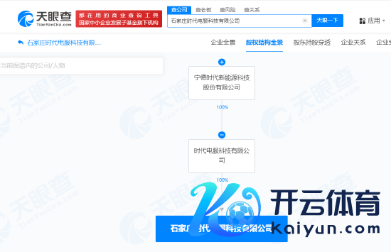 股权全景穿透图泄漏,该公司由时间电服科技有限公司全资捏股,后者为宁德时间(300750)全资子公司。